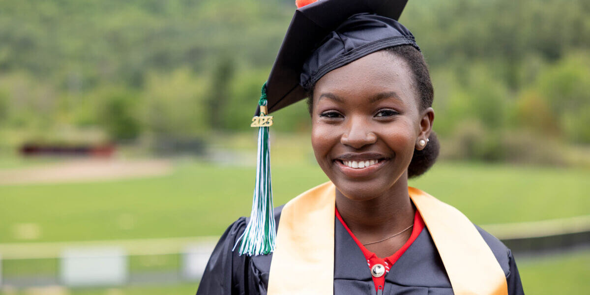 CCV-Winooski graduate Vira Kambere was one of the first students to arrive on graduation morning. An international student originally from the Congo, Vira came to Vermont in 2021 to take classes at CCV. Vira attributes much of her success at the College to the staff and instructors who supported her along the way. “They genuinely want you to succeed,” she said. “I don’t think I’d be here today without all of their support. I came here expecting to only grow academically, but I also had a lot of personal growth…I learned a lot from them and their life stories.” While Vira was nervous to graduate and walk across the stage, she said that staff continued to support her on graduation day, “It means a lot to me…they’re like ‘oh, you already did the hard part, this is the easy part!’ I’m really proud.”