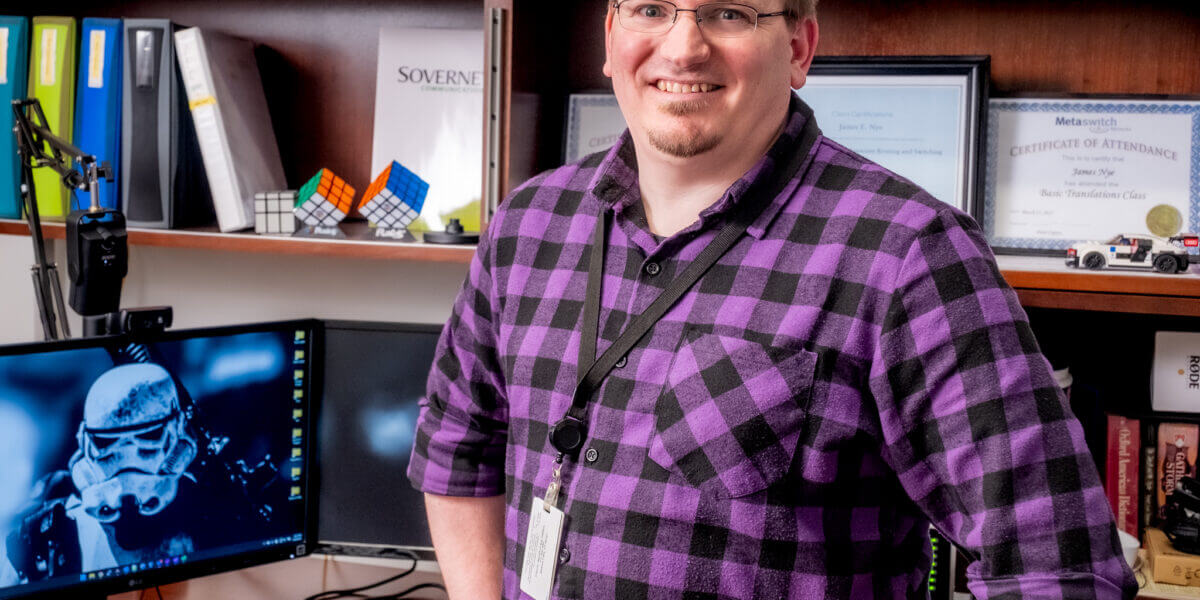 From an early age, James Nye was inspired to pursue a college education. The Addison County native watched his mom persevere for 16 years to earn her associate degree while working full-time and raising two kids by herself. But James’s journey got off to a rocky start. He attended UVM briefly, but it didn’t work out, so instead he found a job at IBM. “After about a year I went, ‘I don’t want to do this. I need to go back to school.’”